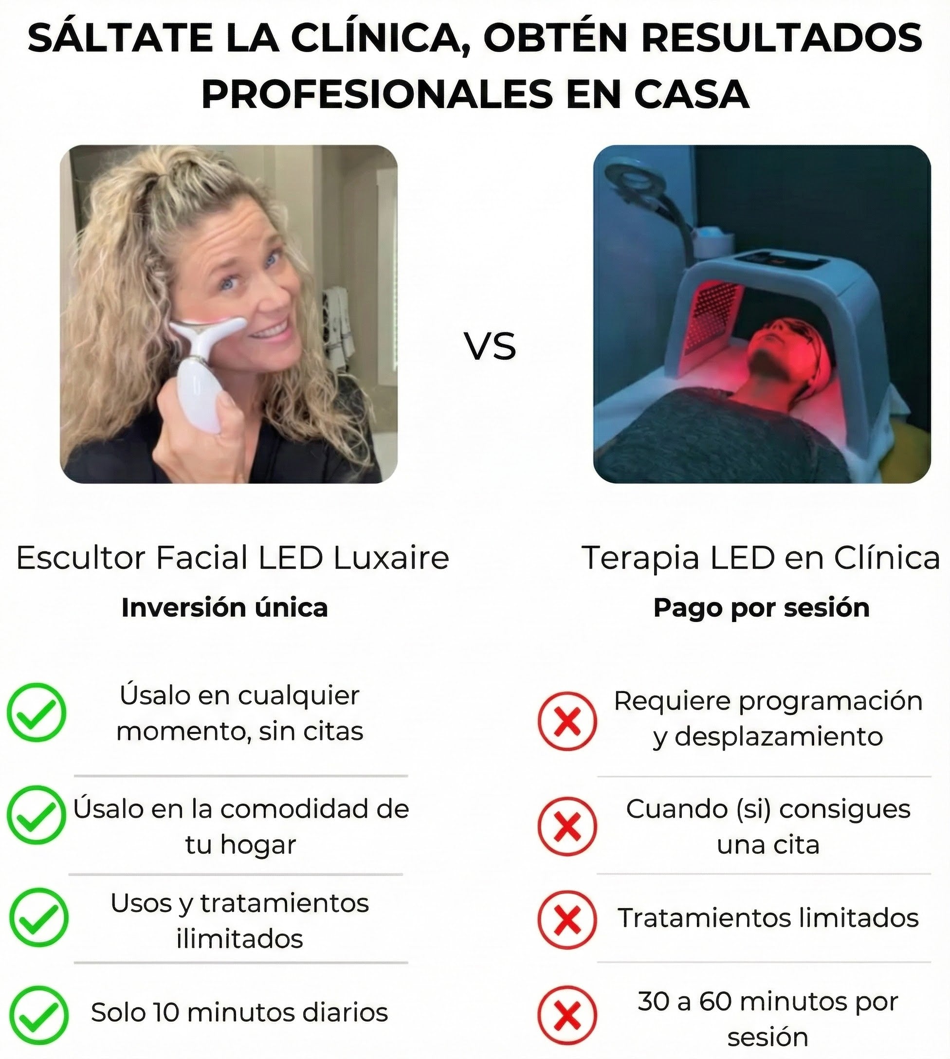 "“Antes gastaba cientos en tratamientos de spa. Ahora obtengo los mismos resultados en casa. Es facilísimo y me ahorra dinero.”"